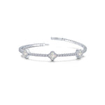 Constructed with comfort and glamor in mind, this flexible station tennis bracelet is set in Lafonn's signature Lassaire simulated diamonds in sterling silver bonded with platinum. The three good-luck symbols, set with genuine cultured freshwater mother-of-pearl, add a sparkling charm to the bracelet.