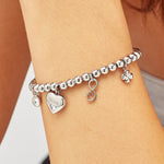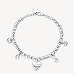 316L stainless steel balls bracelet with heart with the engraving "Mom", four-leaf clover, infinity symbol with "life" inscription pendants and clear crystals.