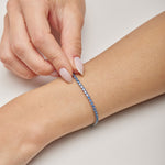 316L stainless steel tennis bracelet with light sapphire color cubic zirconia.