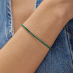 316L stainless steel tennis bracelet with emerald color cubic zirconia.