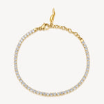 304 stainless steel tennis bracelet and clear cubic zirconia, 14K gold pvd coating with lucky horn pendant .