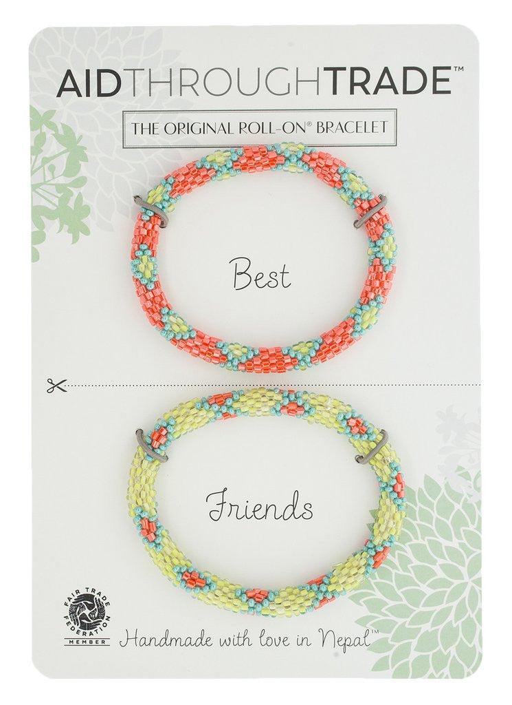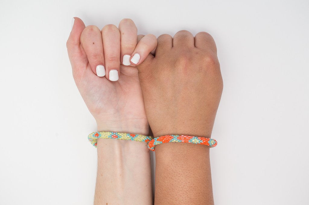 Aid Through Trade bracelets are hand-crafted beaded bracelets that roll on. Unique styling allows bracelet to roll over hand, instead of stretching. Handcrafted with high-quality glass beads, each piece is handmade with love by artisans in Nepal. Your purchase supports empowering women in Nepal by creating an opportunity for fair income and benefits through beautifully designed jewelry.