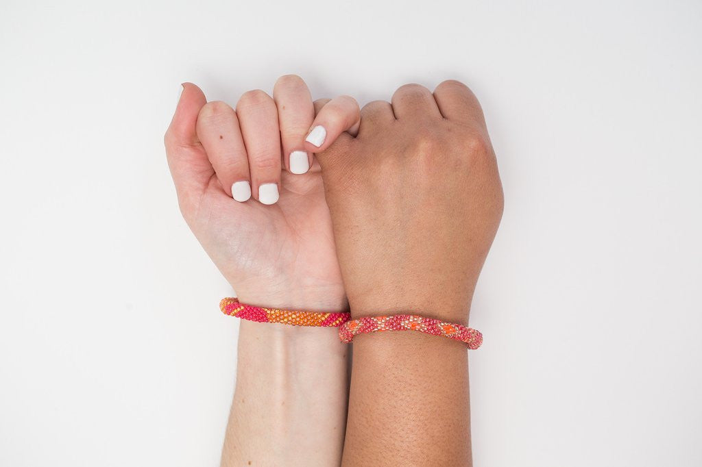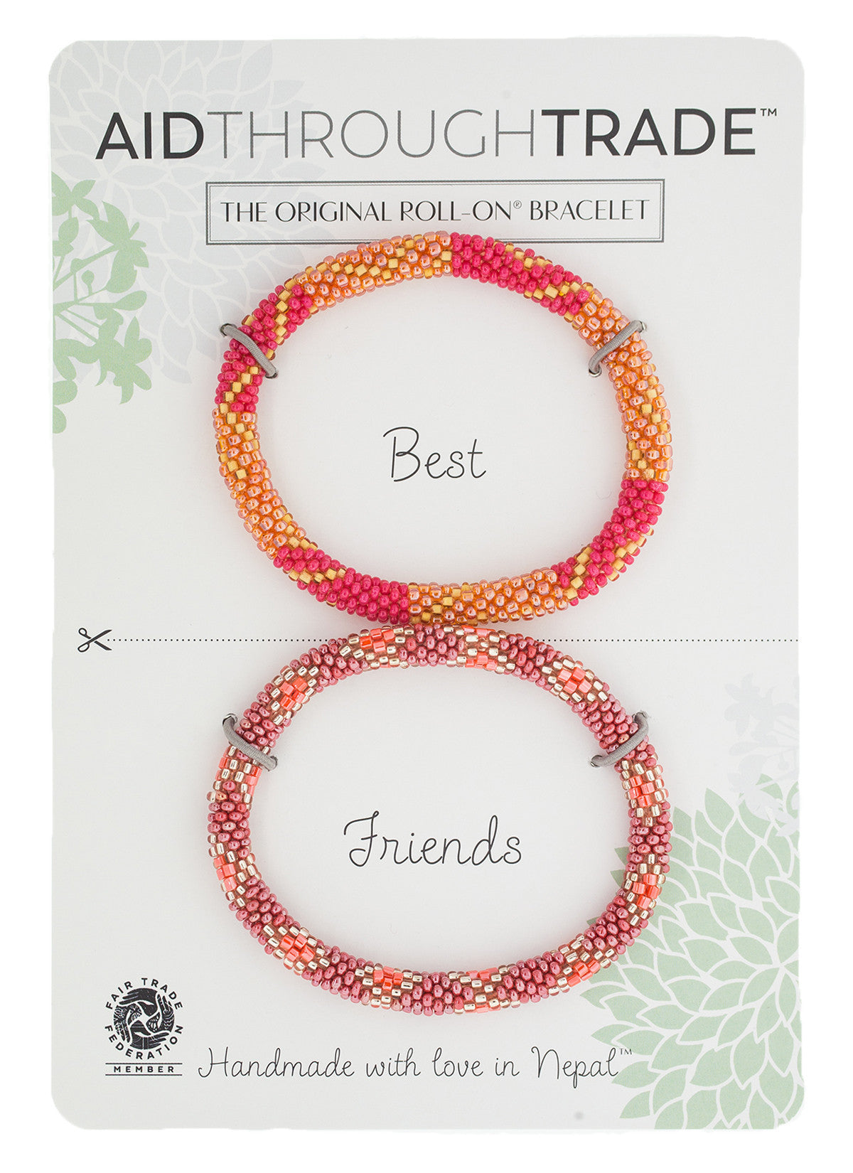 Aid Through Trade bracelets are hand-crafted beaded bracelets that roll on. Unique styling allows bracelet to roll over hand, instead of stretching. Handcrafted with high-quality glass beads, each piece is handmade with love by artisans in Nepal. Your purchase supports empowering women in Nepal by creating an opportunity for fair income and benefits through beautifully designed jewelry.