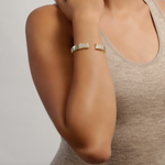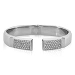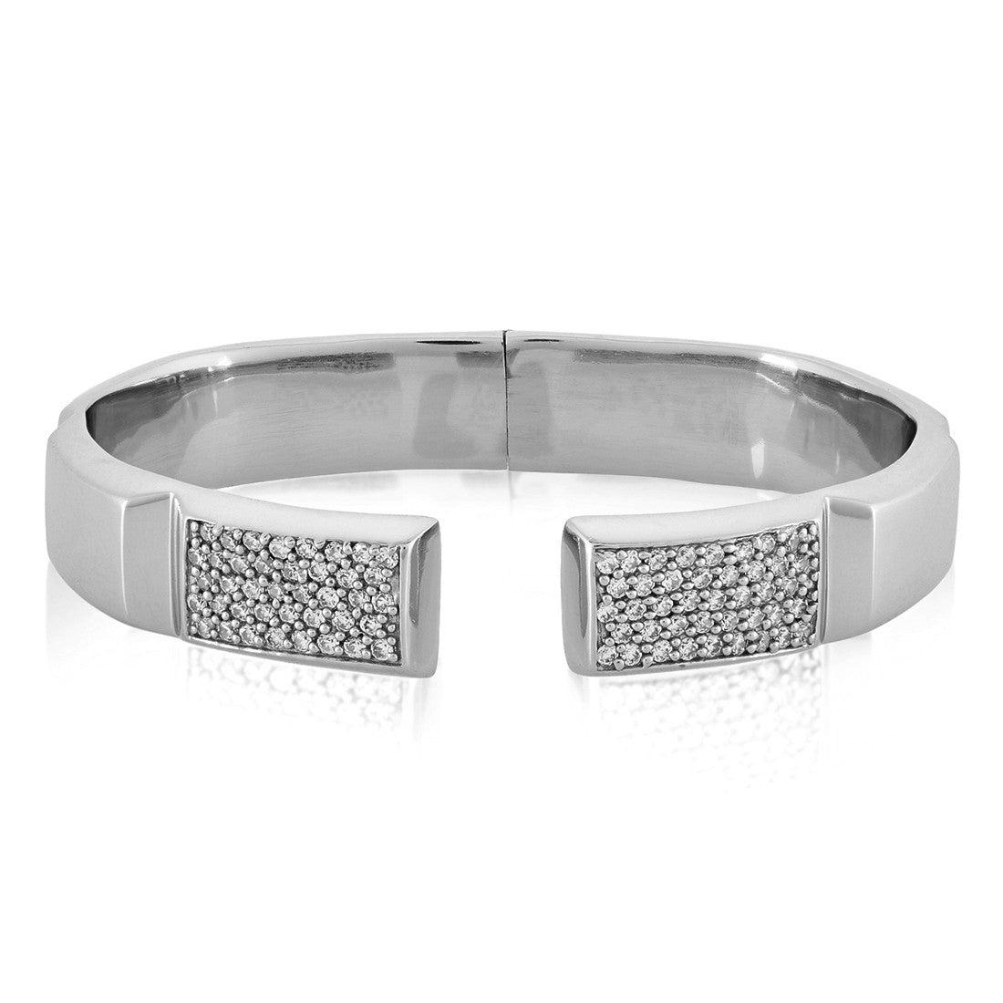 Sleek, beveled bars form the base of this luxe cuff, highlighting two beds of micropave CZs at its opening.