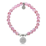 Silver Dog Mom Pink Opalescent Stone Bracelet
