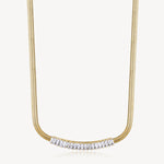 304 stainless steel snake chain choker necklace with 14K gold pvd coating and clear cubic zirconia.