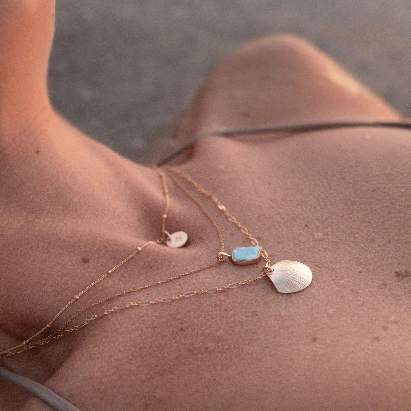 This gorgeous shell necklace is handmade but cutting it to shape and applying the shell texture with a hammer. These are made with top quality skill and precision!
