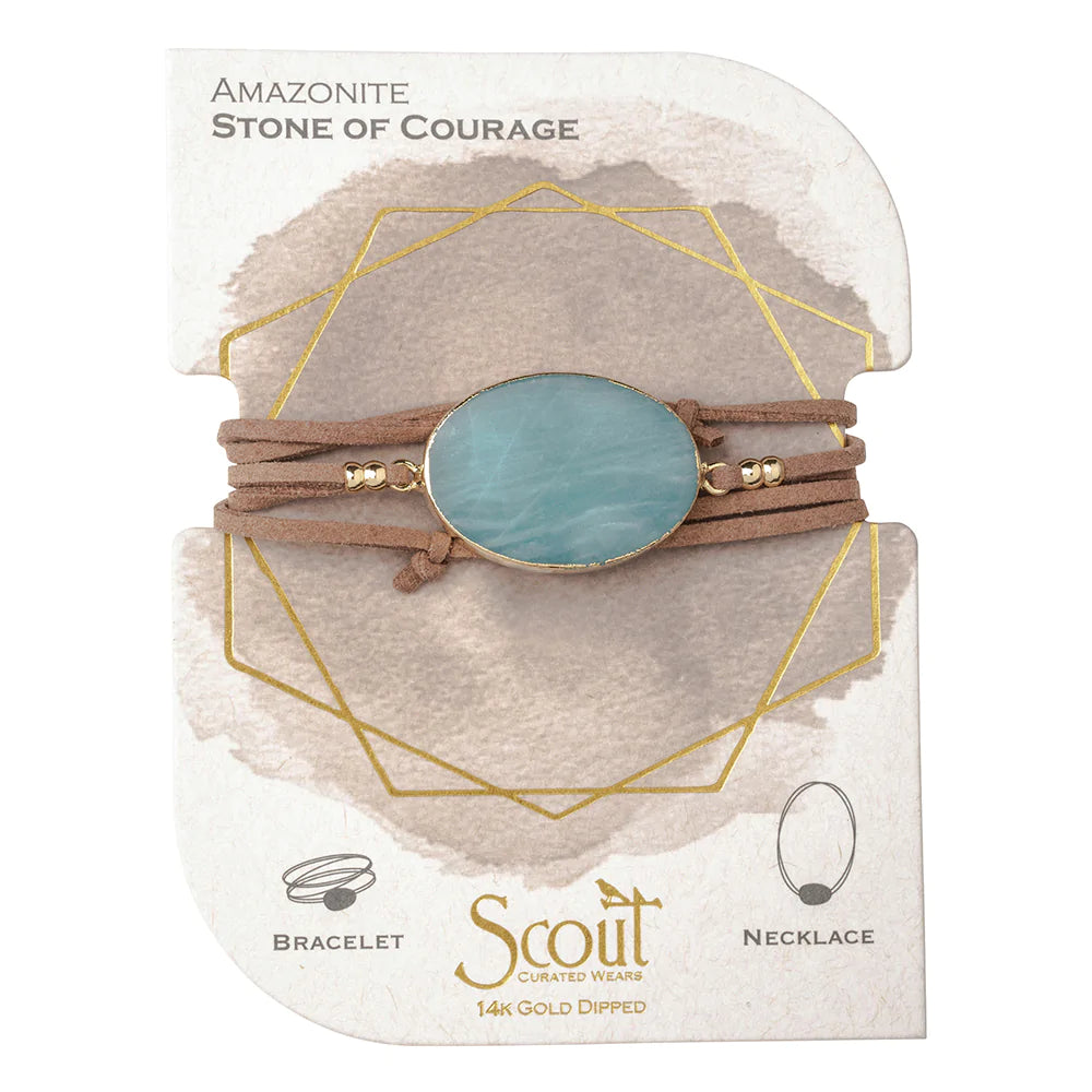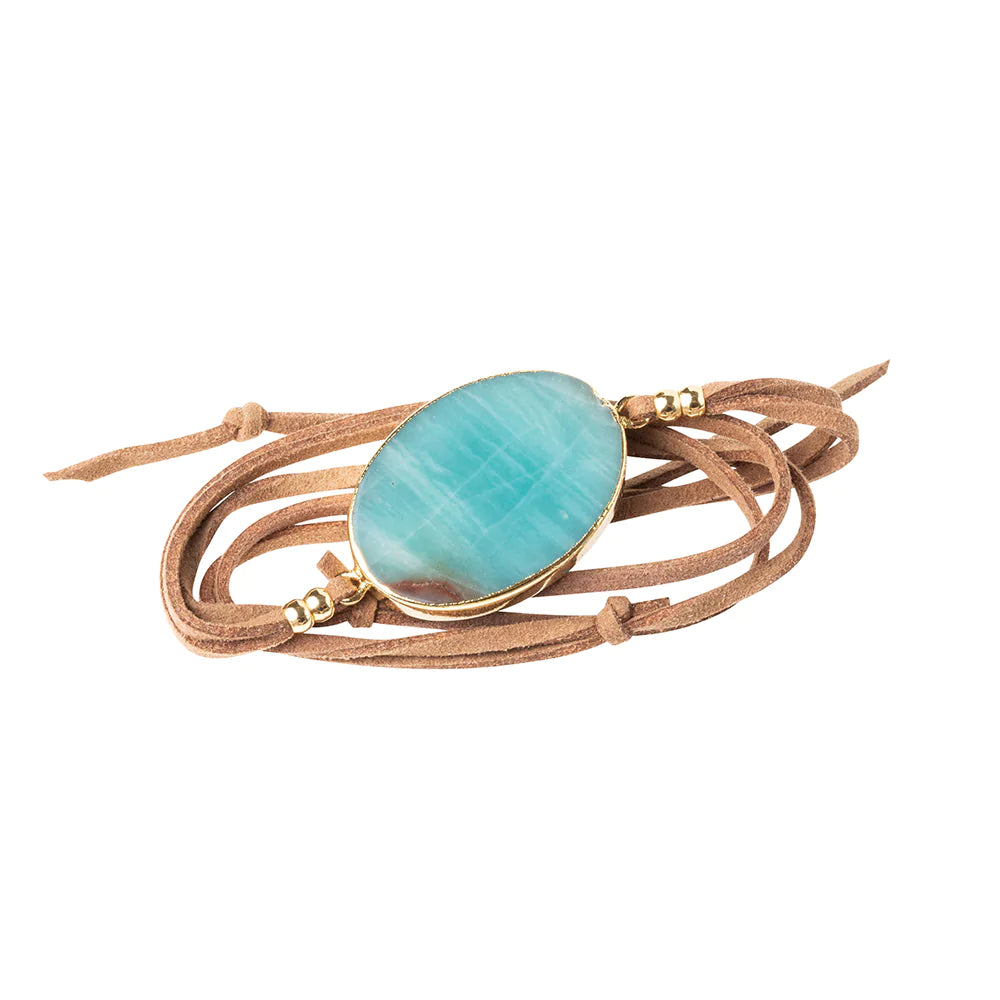 Suede/Stone Wrap - Amazonite/Gold/Stone of Courage