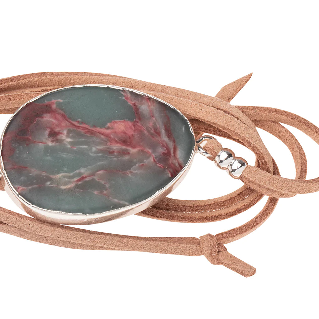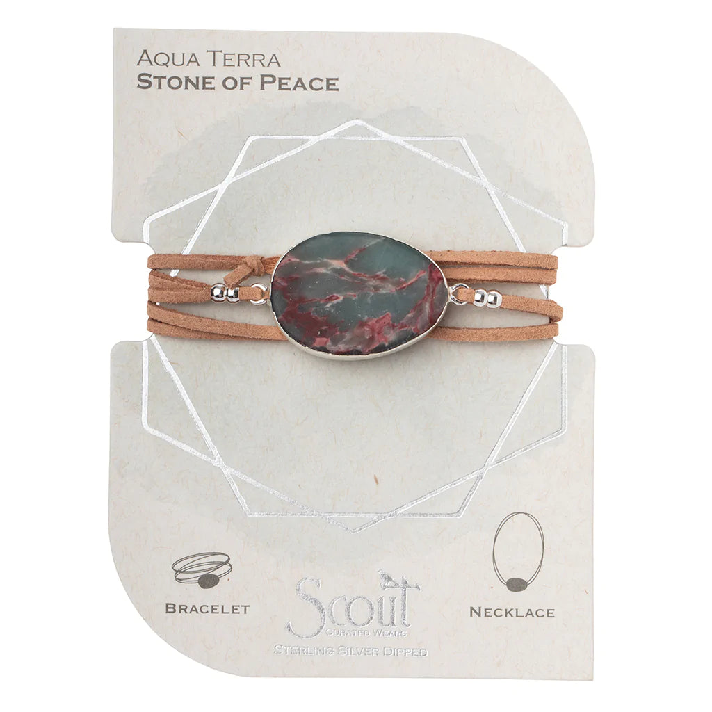 Suede/Stone Wrap - Aqua Terra/Silver/Stone of Peace