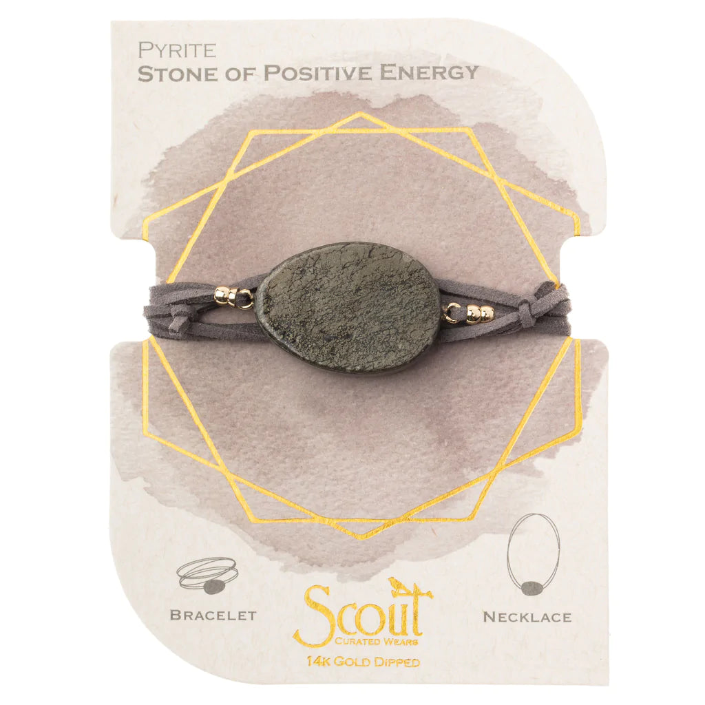 Suede/Stone Wrap - Pyrite/Gold/Stone of Positive Energy