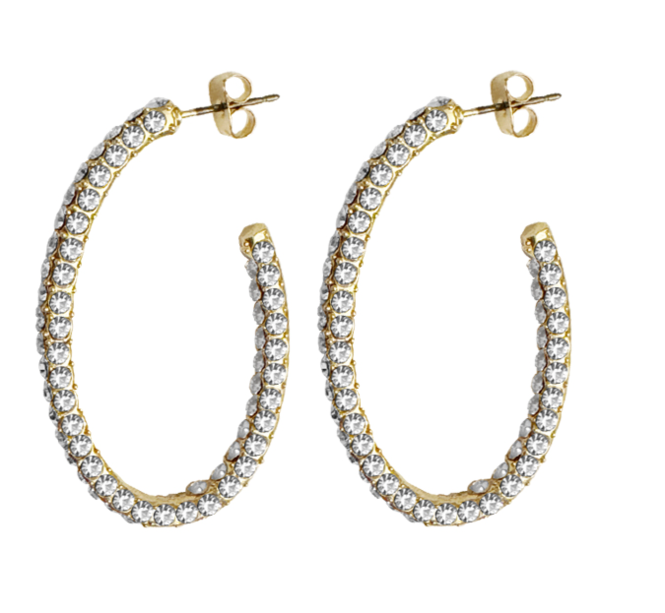 Elegant with a modern twist, these Crystal Oval Hoop Earrings are designed to add refined sparkle to bridal and prom looks alike. Featuring brilliant clear crystals set along a softly elongated oval silhouette, they create a flattering, face framing effect with beautiful light catching shine.