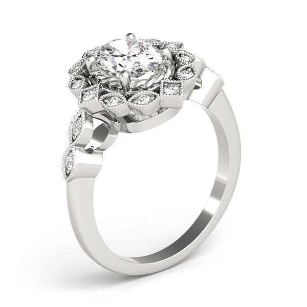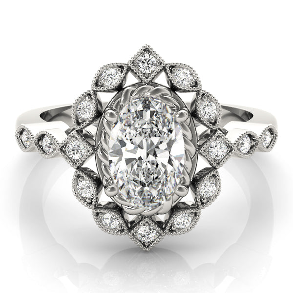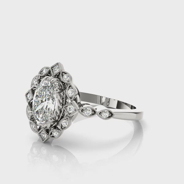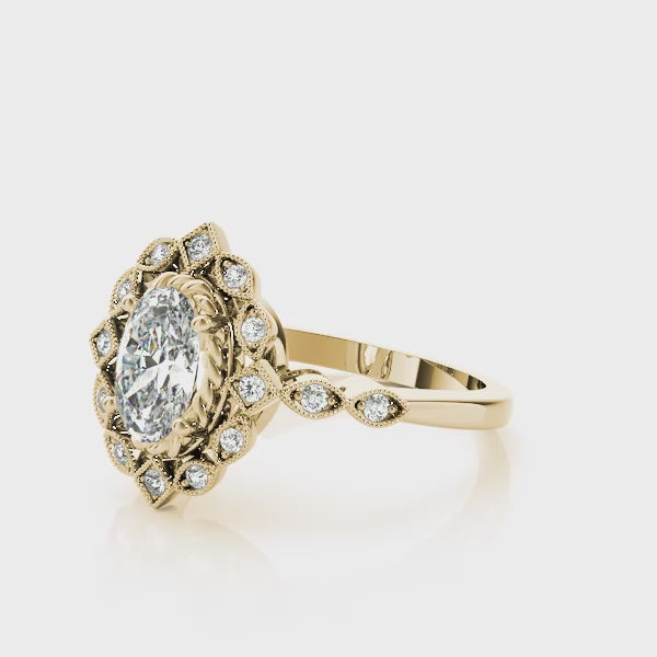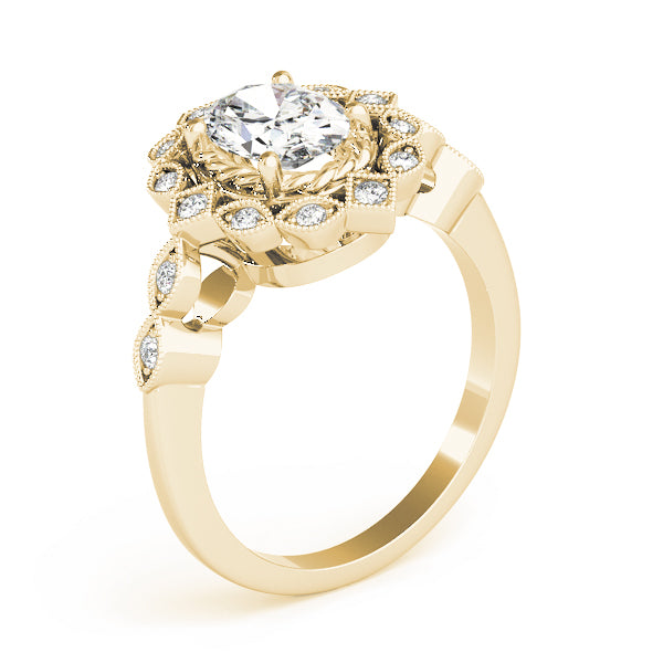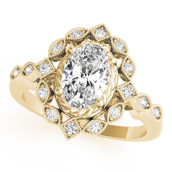 14k Gold Vintage Inspired Oval Diamond Engagement Ring