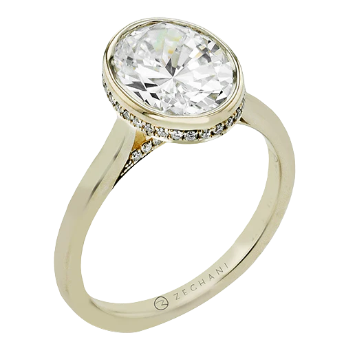 14k Gold Hidden Halo Bezel Set Oval Diamond Engagement Ring