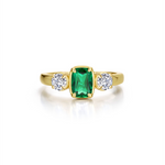 Elegant with modern flair. This ring features a cushion-cut simulated emerald and Lafonn’s signature Lassaire simulated diamonds, set in sterling silver plated with gold. The rich green stone contrast beautifully with the brilliant whites.