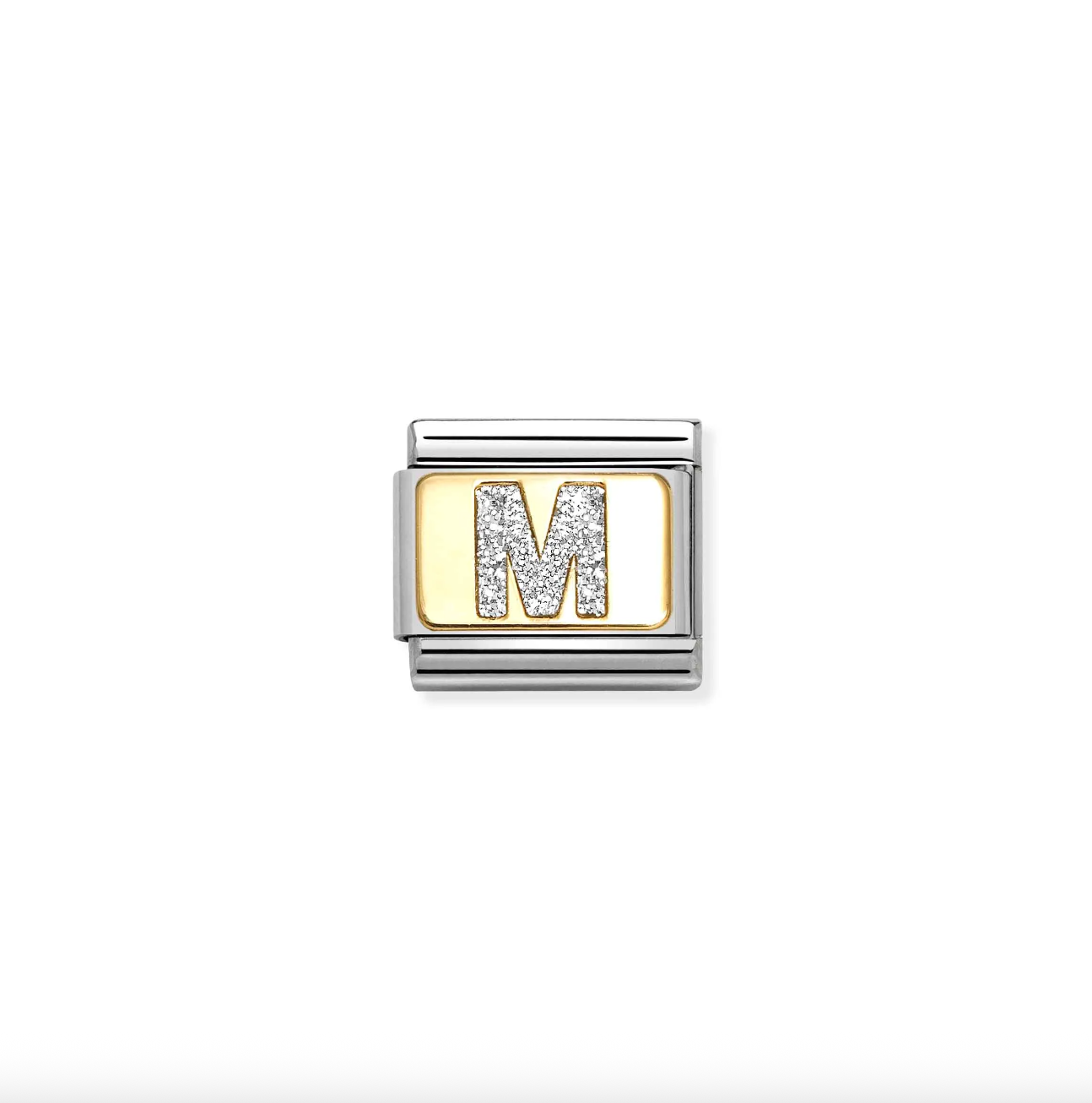 Nomination M Glitter Letter Charm in Stainless Steel with Enamel & 18k Gold