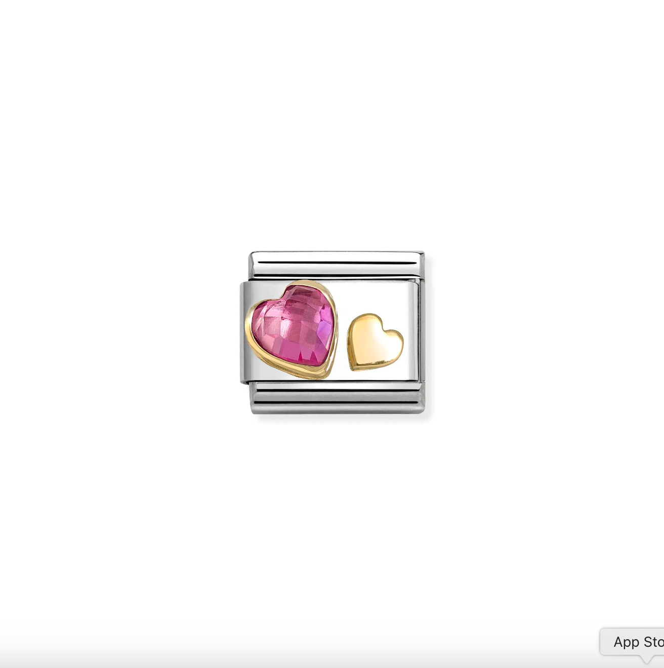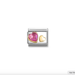 Nomination Dark Pink Heart Charm in Stainless Steel with 18k Gold