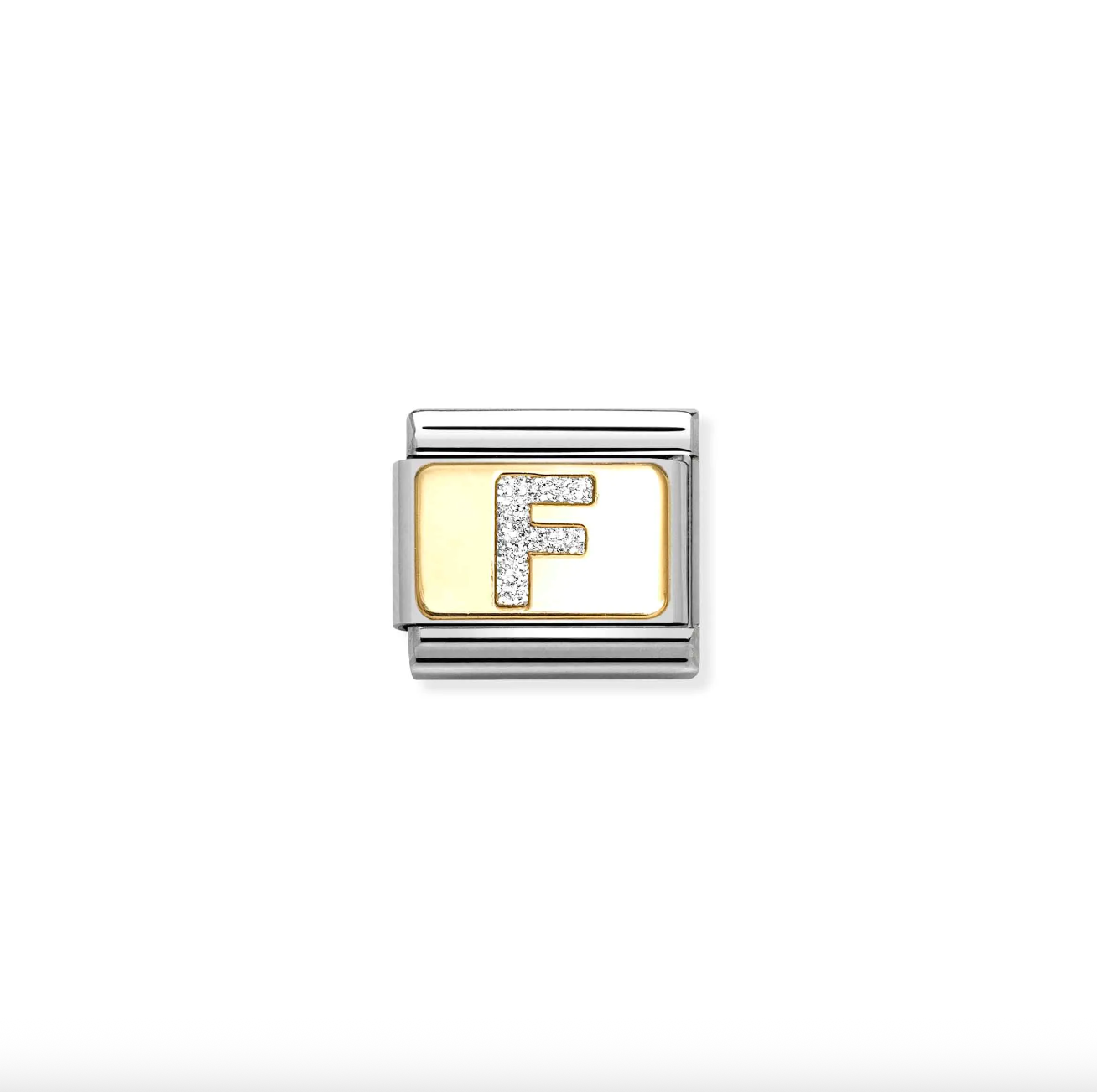 Nomination F Glitter Letter Charm in Stainless Steel with Enamel & 18k Gold