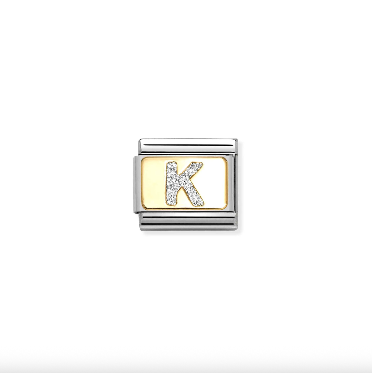 Nomination K Glitter Letter Charm in Stainless Steel with Enamel & 18k Gold