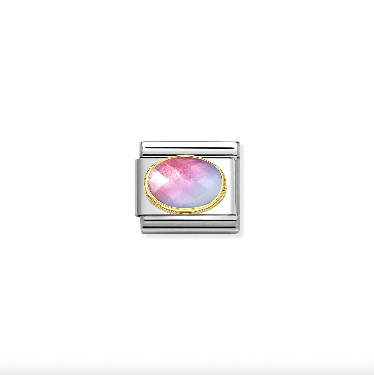 Original Nomination Classic Link for Composable bracelet in stainless steel with yellow bonded gold and Two-Tone Pink-Light Blue faceted stone. Made in Italy. Choose this Link to make Mum’s Composable bracelet even more special.