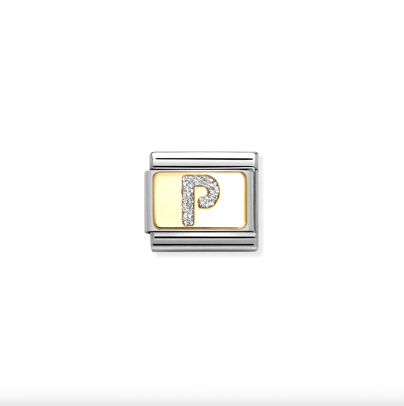 Nomination P Glitter Letter Charm in Stainless Steel with Enamel & 18k Gold