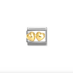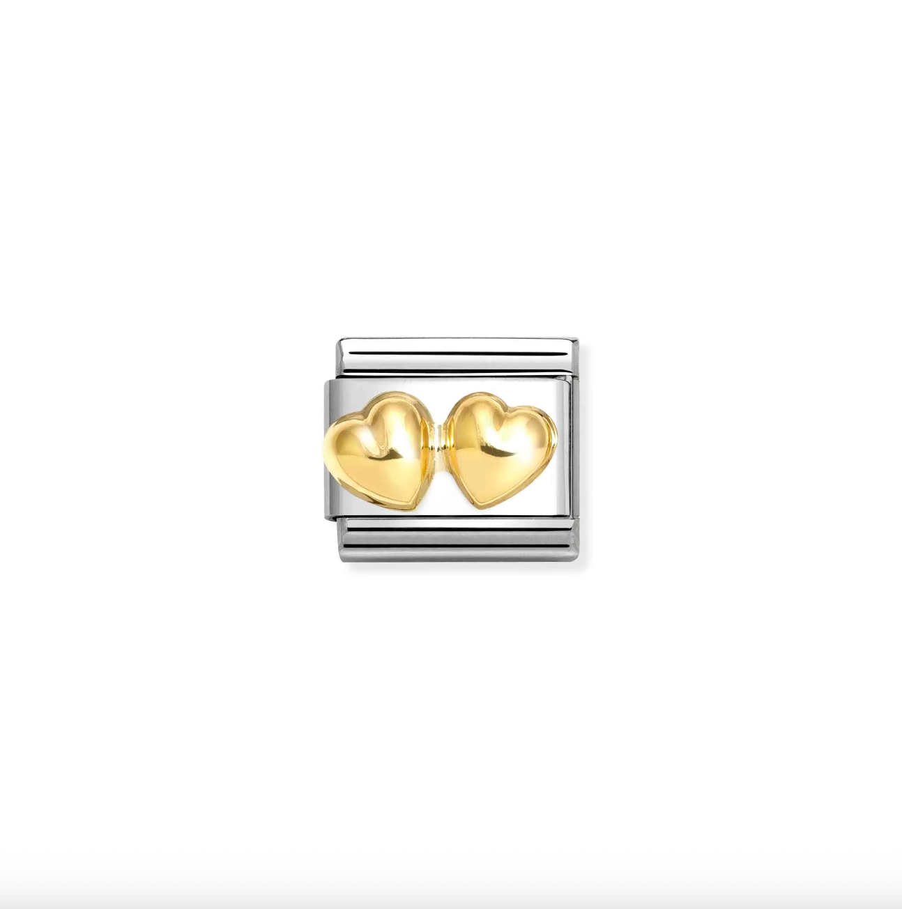 Nomination Raised Double Heart Charm in Stainless Steel with 18k Gold