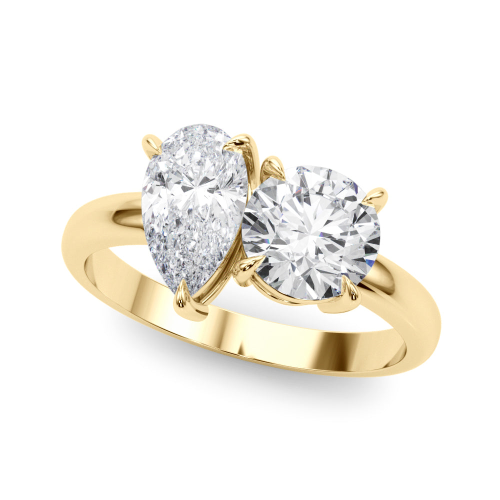 14k Gold 2-Stone Round & Pear Engagement Ring