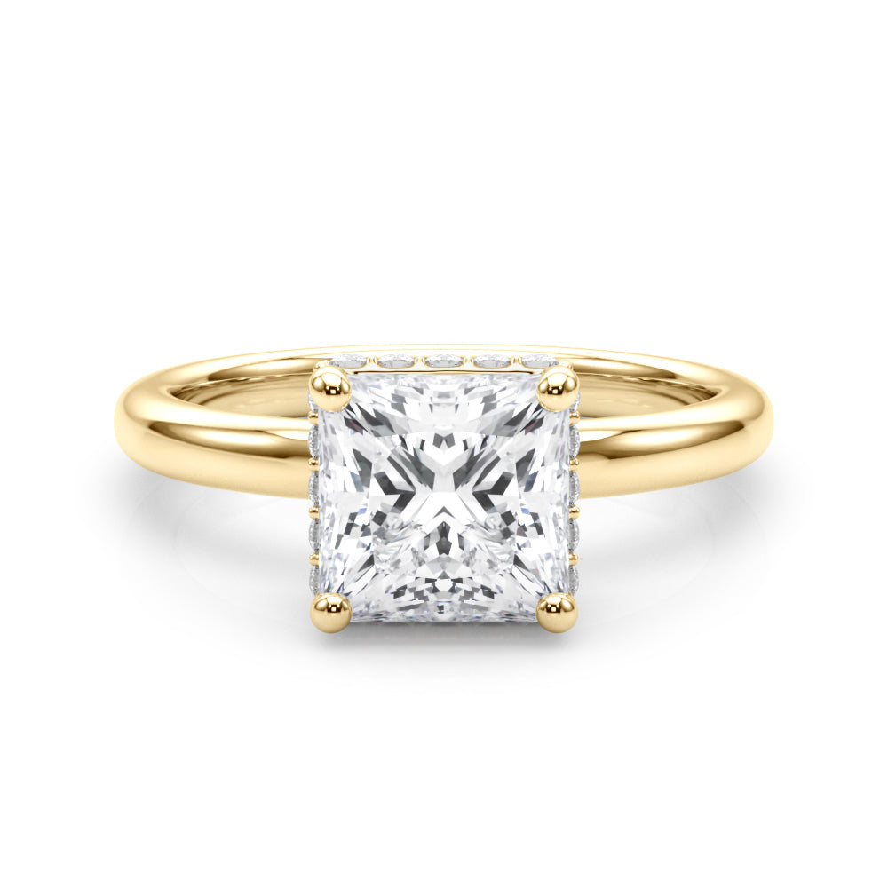 14k Gold Hidden Halo Princess Cut Engagement Ring