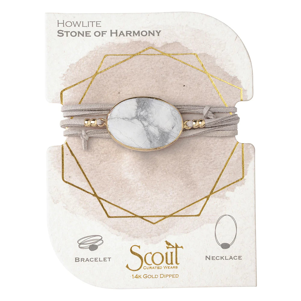 Suede/Stone Wrap - Howlite/Gold/Stone of Harmony
