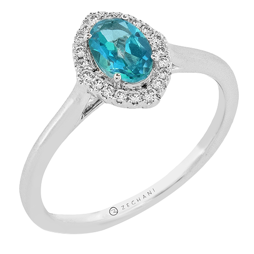 14k White Gold Oval Cut Paraiba Topaz & .13ct Diamond Ring