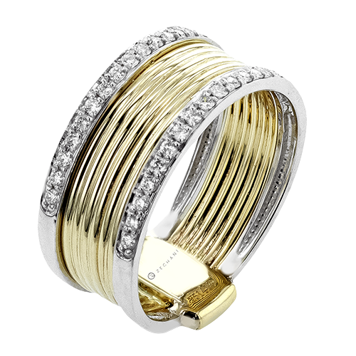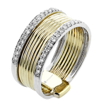 This bold and beautiful two-tone cigar band strung with diamonds is the perfect ring to make a statement