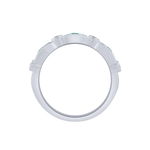 Perfect for stacking, pairing with an engagement ring, or wearing solo as a subtle statement, this band is both versatile and eye-catching. The rich green emeralds bring a unique pop of color, while the diamonds add timeless brilliance.