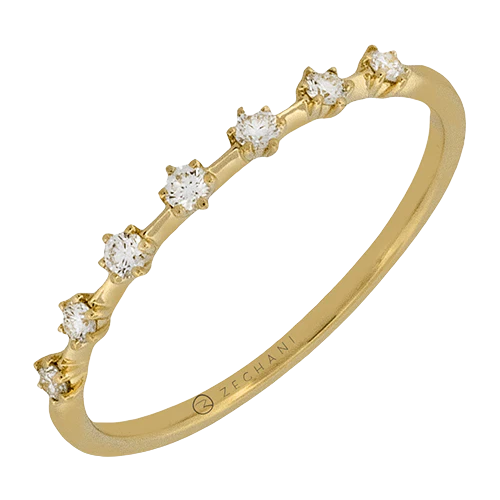 This elegant diamond band features a sleek row of round brilliant diamonds set in delicate prongs, creating a refined and timeless look.