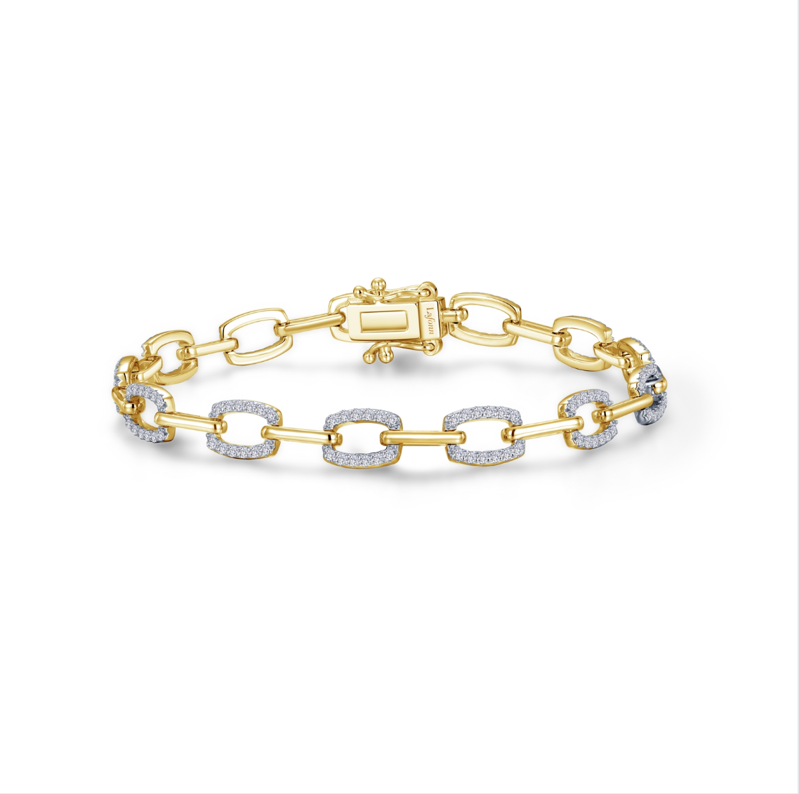 Simple yet sophisticated. This alternating link bracelet is set with Lafonn's signature Lassaire simulated diamonds in sterling silver using Lafonn's exclusive TR Gold, a new and improved plating process that preserves the rich color of gold and enhances the wearability of our gold-plated styles.