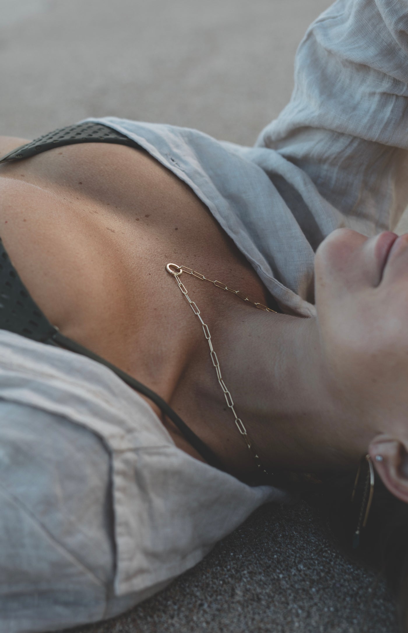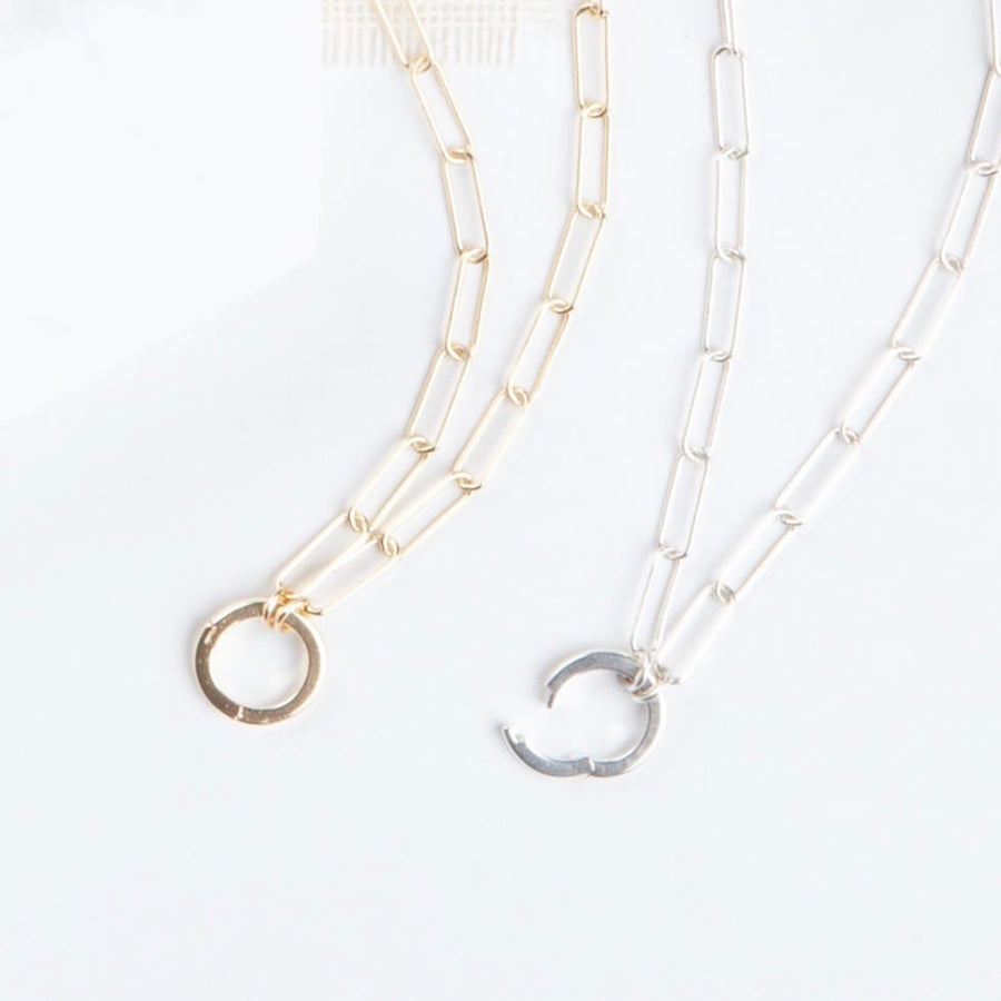 Our Hudson necklace chain is both fashionable and versatile. It features a large ring clasp in the front to easily add charms and stones of your choice.