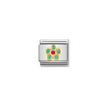 Nomination Green and Red Flower Charm in Stainless Steel 18k Gold & Cubic Zirconia