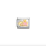 Original Nomination Composable Classic Link for Composable bracelet in stainless steel with bonded yellow gold Perfume with Flower symbol with Pink and White coloured enamel.