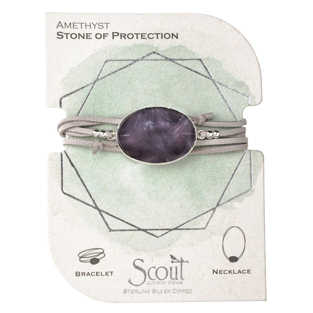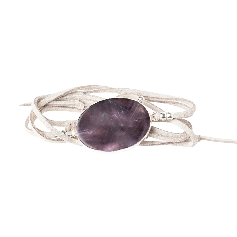 Suede/Stone Wrap - Amethyst/Silver/Stone of Protection