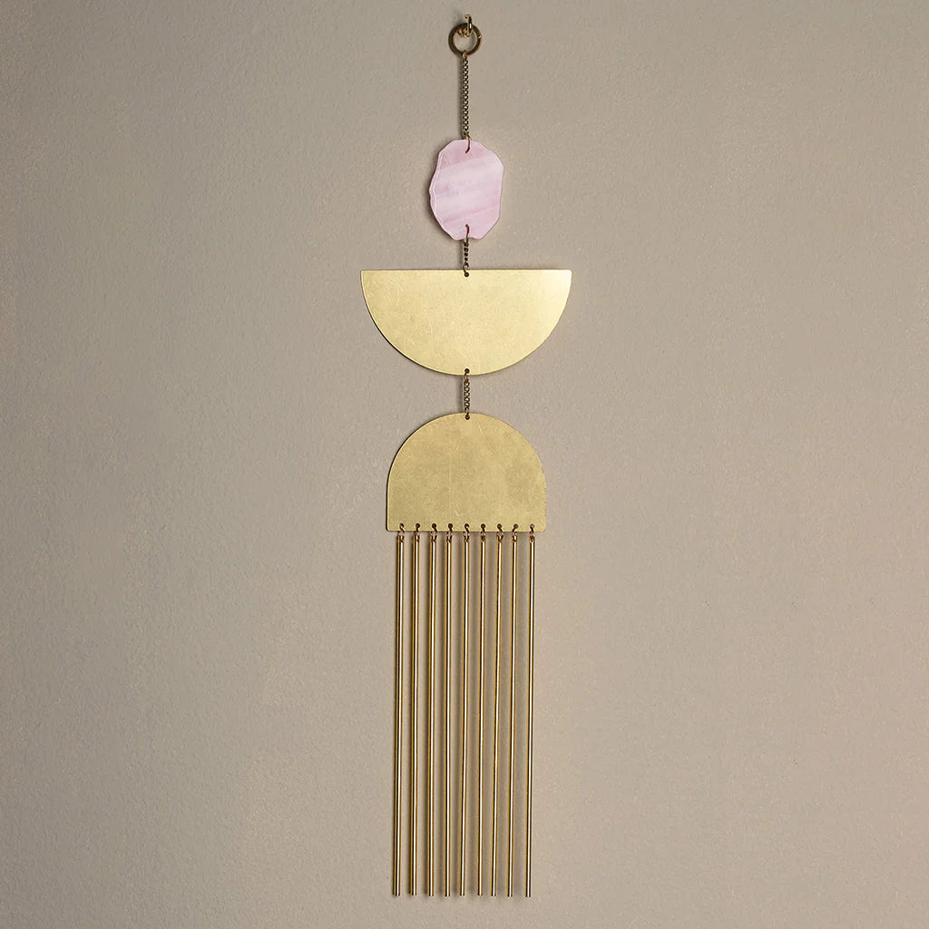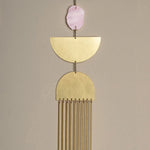 • Materials: Natural brass, semi precious stone detail, hook for hanging.